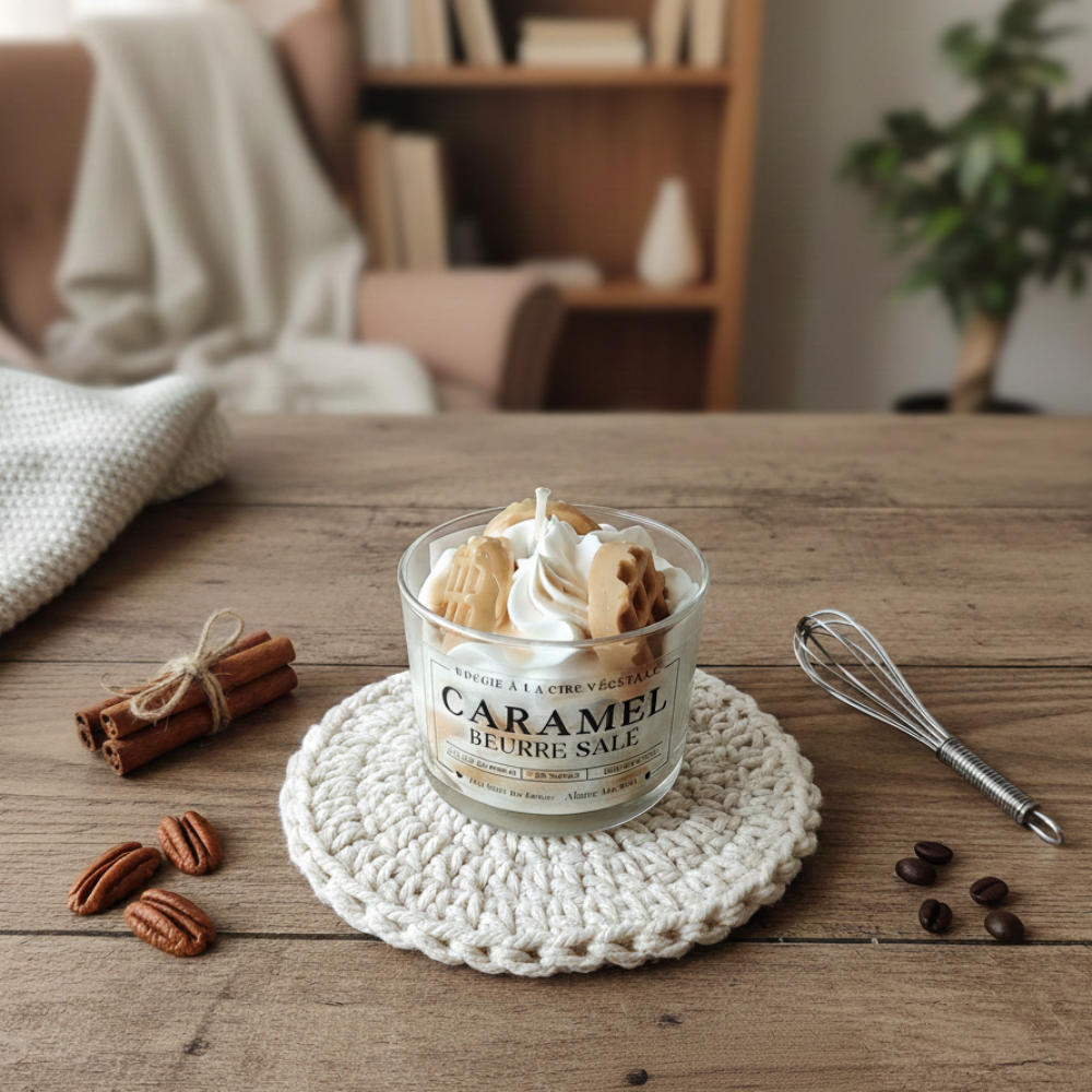 Par conséquent, chaque bougie caramel beurre salé est un objet unique dont l’aspect peut varier selon la production. D’un autre côté, cette méthode artisanale garantit une diffusion de parfum constante et une esthétique irréprochable durant de longues heures. Ainsi, si vous appréciez les ambiances culinaires, n’hésitez pas à compléter votre collection avec notre bougie pain d’épices pour un festin olfactif. Par ailleurs, cette création apporte une chaleur incomparable à vos soirées.