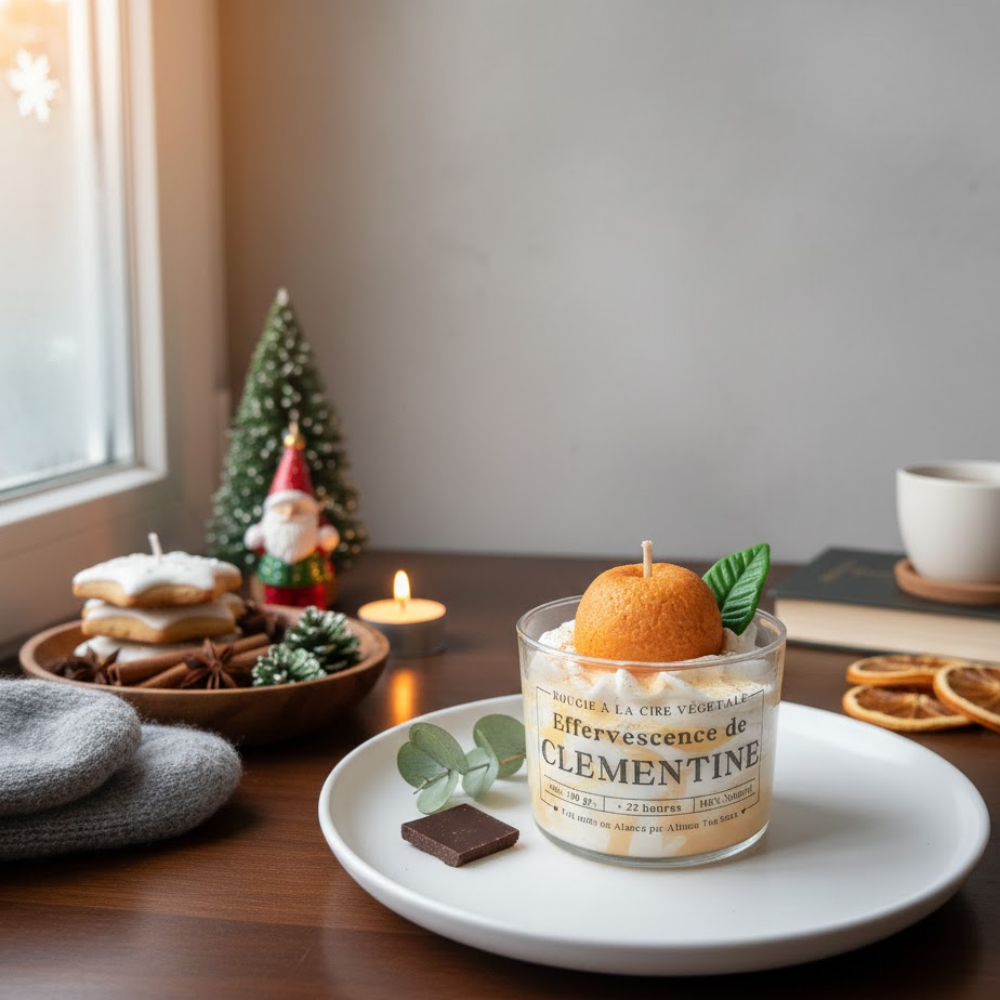 Plus qu’une simple bougie décorative, notre édition Effervescence de Clémentine insuffle une énergie nouvelle à votre foyer. Effectivement, cette bougie clémentine capture l’essence même du fruit, entre acidité pétillante et douceur sucrée. Dès lors, son visuel en trompe-l’œil avec sa clémentine déposée sur une crème onctueuse émerveillera vos convives sans le moindre doute.