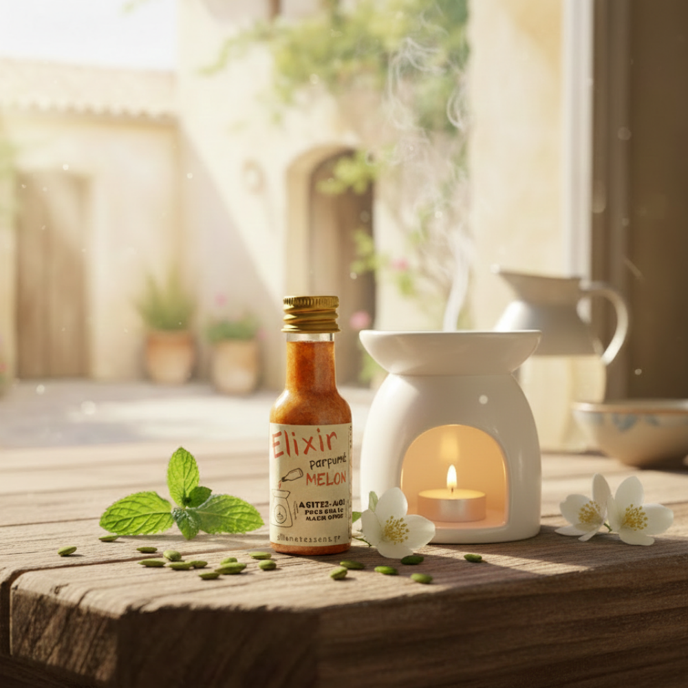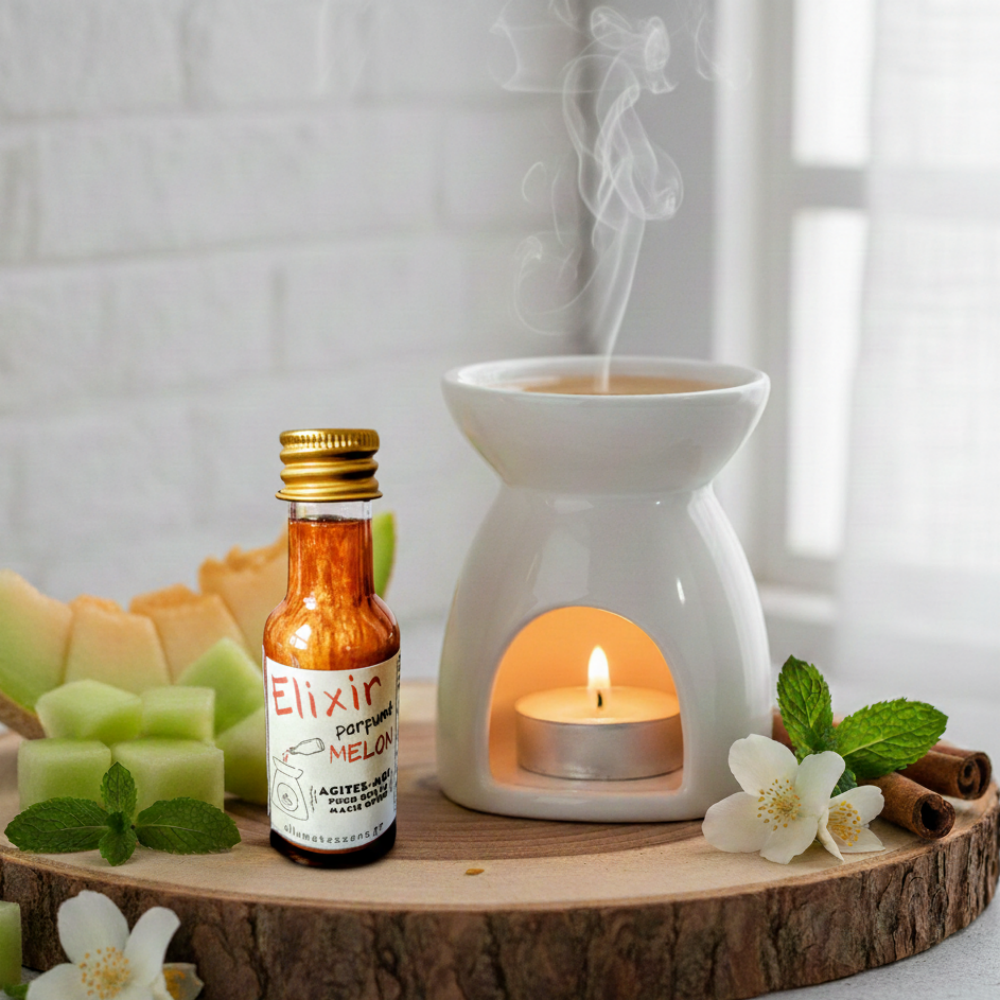 Plongez dans une ambiance estivale et rafraîchissante avec notre Huile parfumée Melon. 🍈